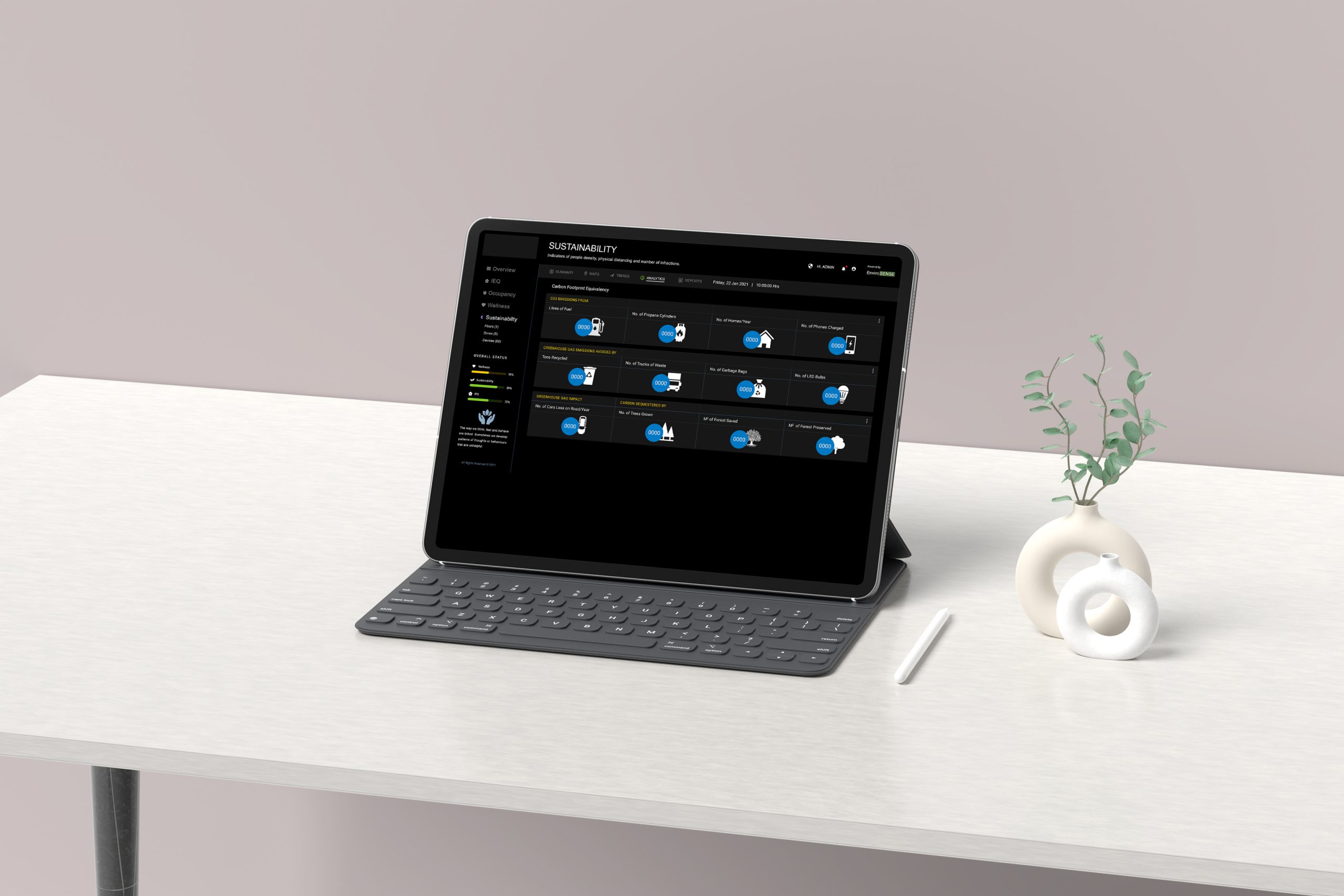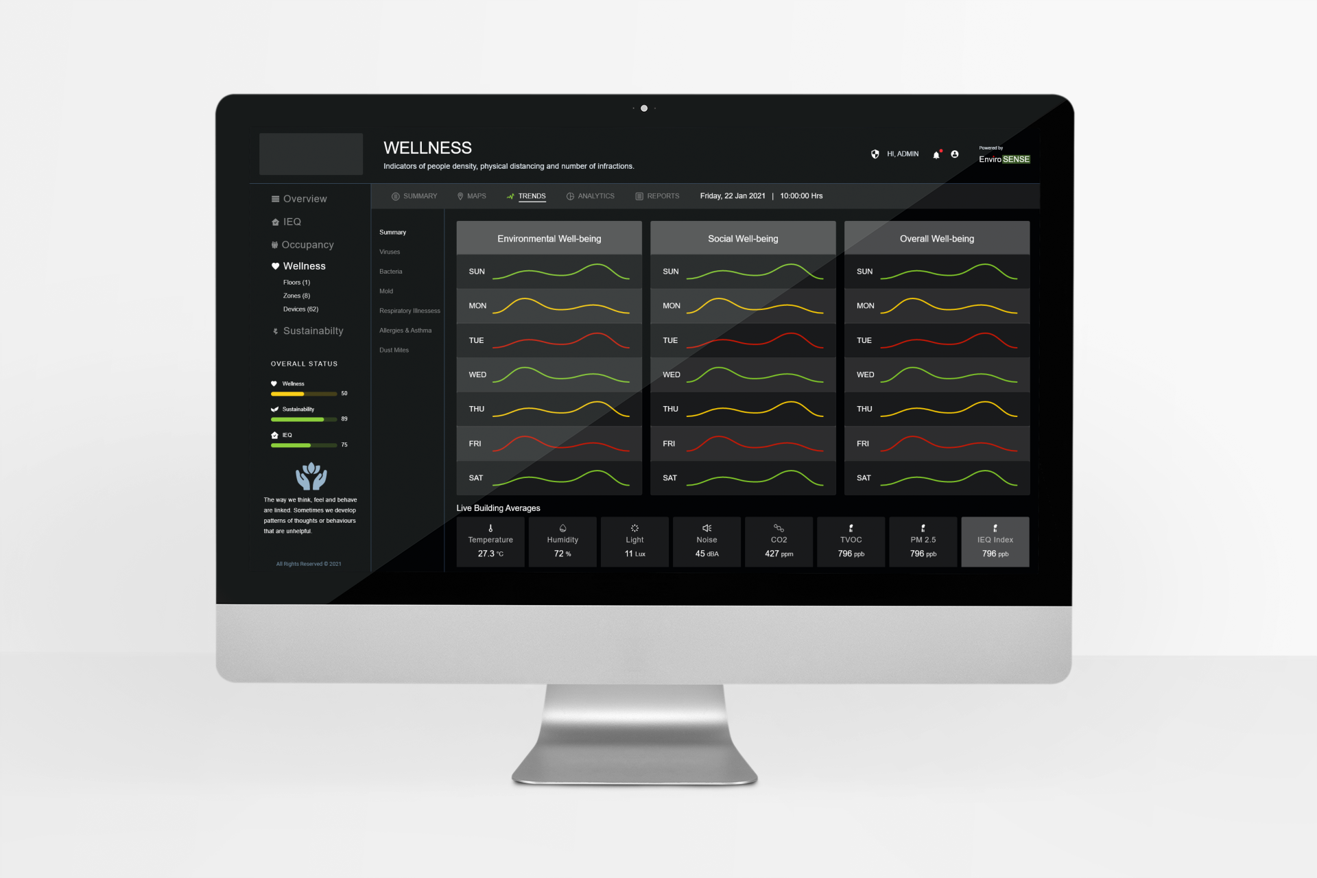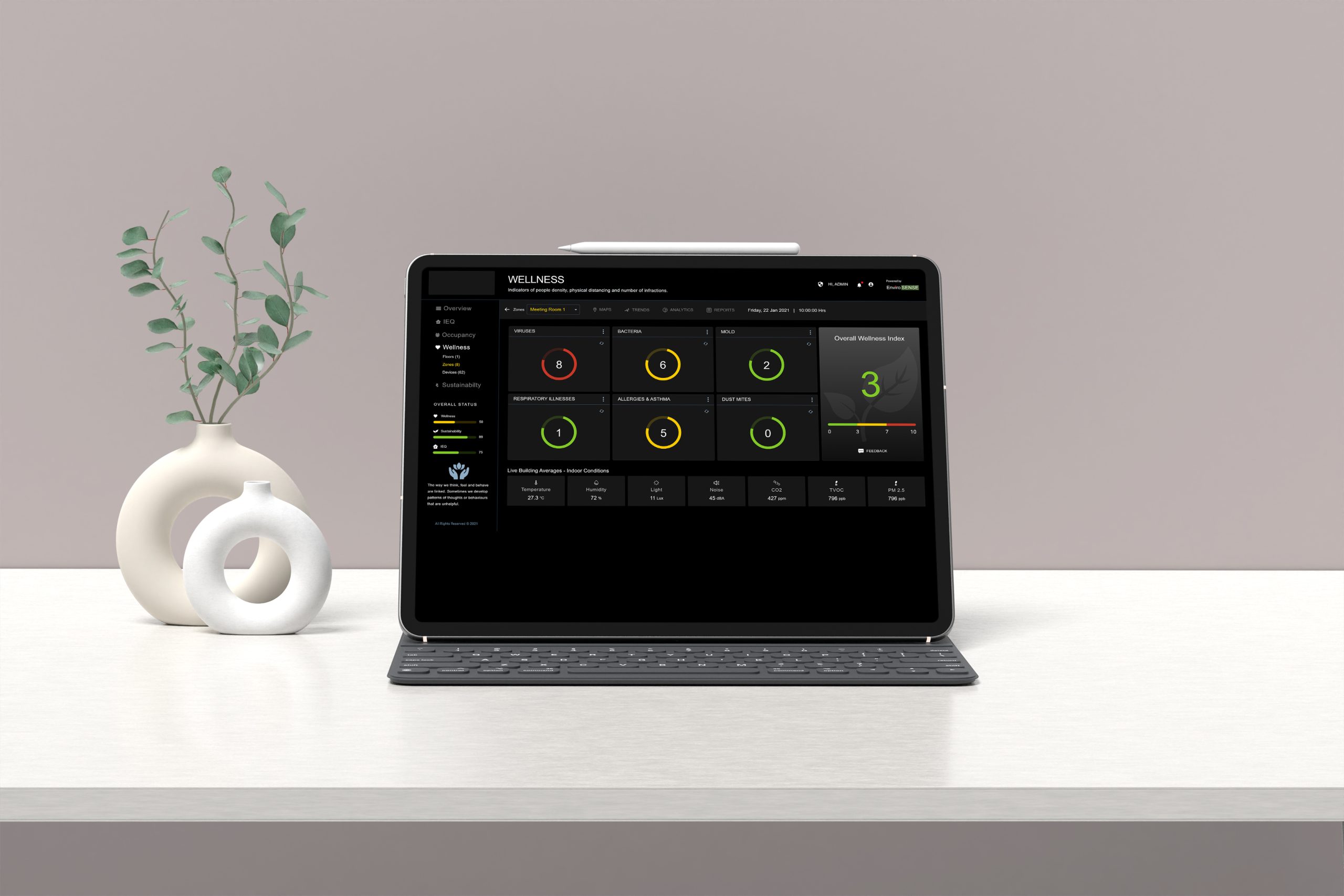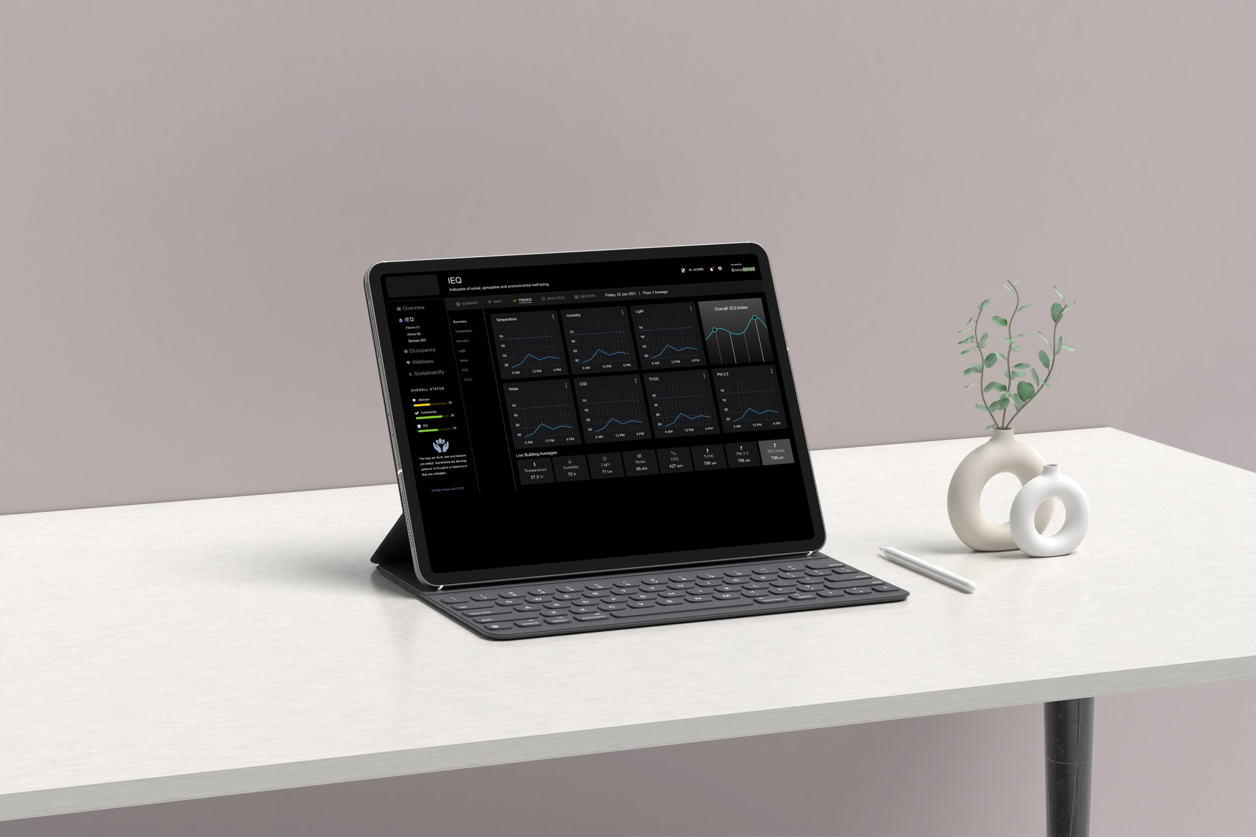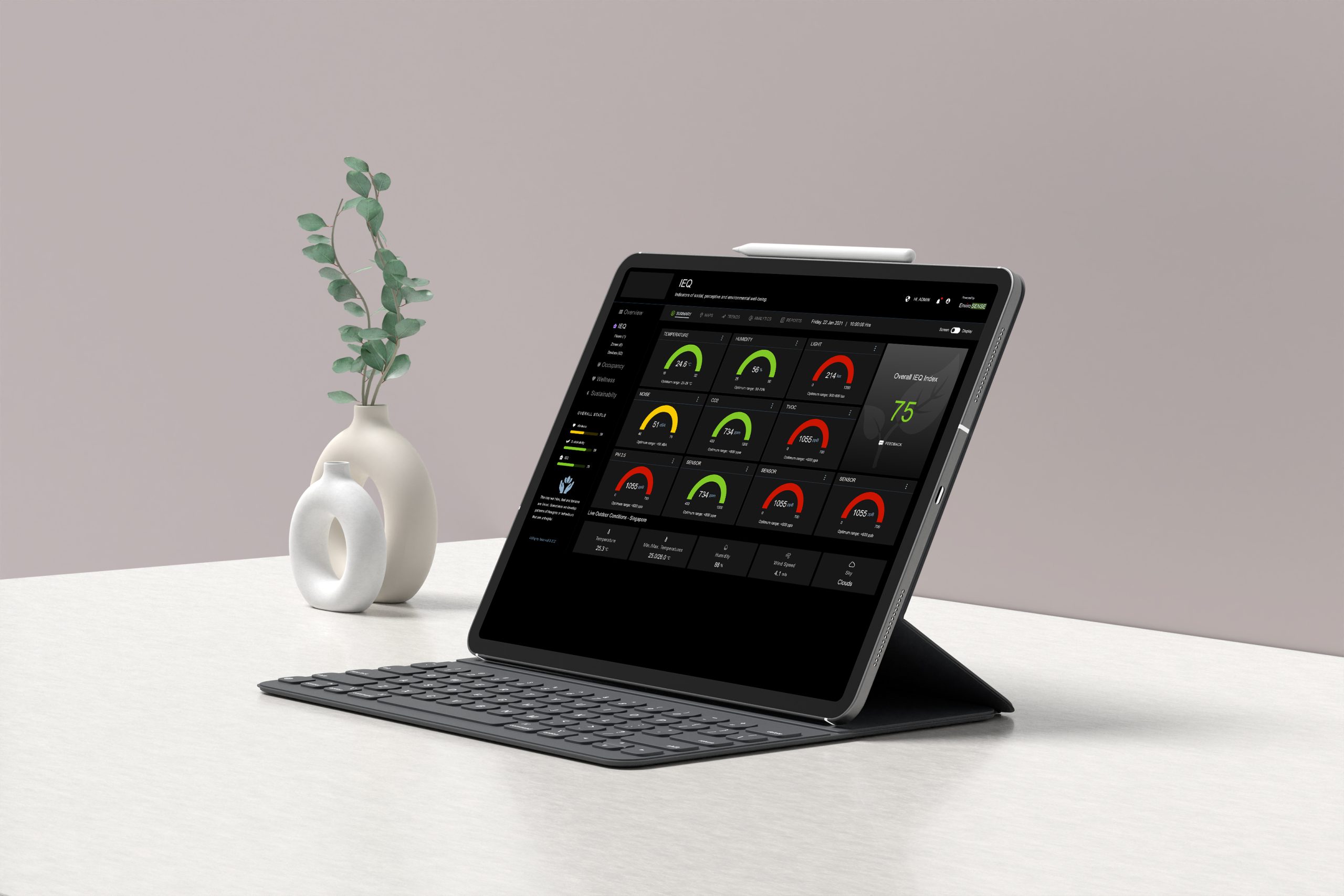 EnviroSENSE is an open, end-to-end, IoT & data analytics solution that quantifies the indoor environment in the context of people, comfort, productivity, wellness, and sustainability.